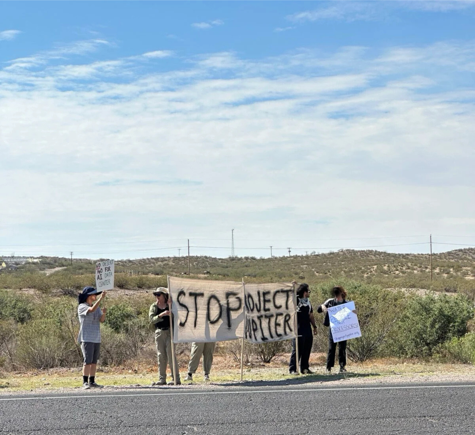 Fight Chihuahuan Desert Extraction emerged in response to the Project Jupiter development in Doña Ana County. We are a group of local grassroots organizers concerned about the projects’ long-term water usage, energy demands, and economic consequences in our desert ecosystem. Project Jupiter is a part of the larger Stargate Project, a massive $500 billion public-private initiative to build twenty AI data center campuses. The project is backed by multi-billion dollar AI companies, Open AI and Oracle, and their “local” partner, Borderplex Digital Assets. We object to the approval process our state and county government have taken to ensure Project Jupiter benefits. State regulatory loopholes, county financing, and ease of permitting have allowed construction to begin; all without sufficient public input, transparency or accountability. #StopProjectJupiter